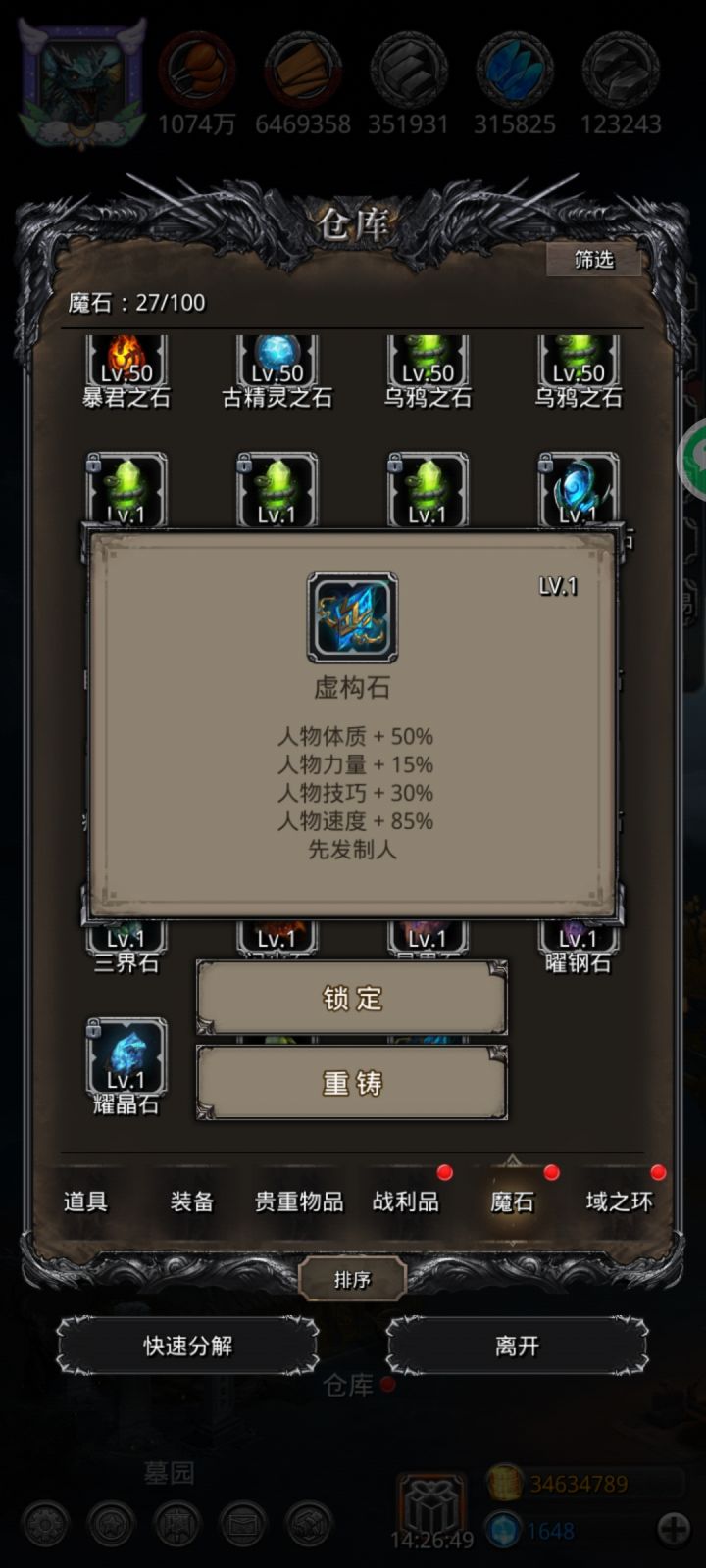 wiki上都是打完遗迹19有英雄头盔后的打法,昨天在论坛上看到了个圣龙的打法,然后试了估计得有十几把,结果老是中途断大盾锤,一直没过,今天又试了几把,终于过了,不过过的那把也还是断了大盾锤,圣龙又捐躯,没几秒神官也捐躯,好在那会boss血不多了,靠圣裁打完了。昨晚也试过用小盾锤,然后不行,不戴火环都扛不住,还是得刷脸大盾锤。这85速的魔石天生给我来了一个“先发制人”,搞的我都不知道要不要洗练了。