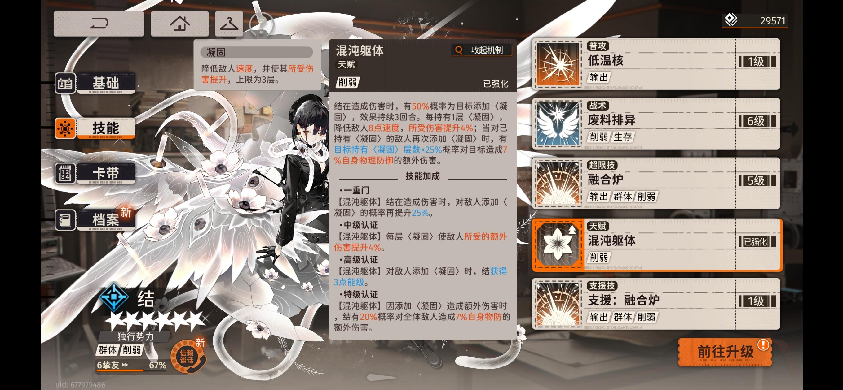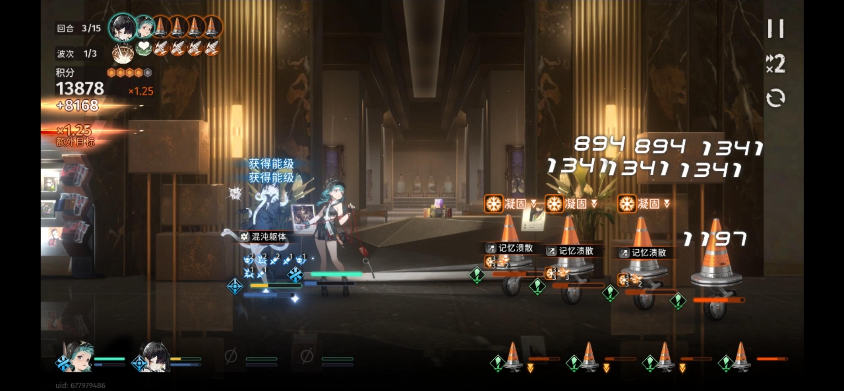 结伤害并没有想象中那么低,主要还是看运气。有一个问题,每次放绝技后直接可攻的目标触发额外伤害只有两波,不可攻的只有一波伤害。但多次测试,伤害数值并不影响,伤害有重叠。以我现在的结为例,一次额外伤害为399,有凝固buff的一次额外伤害差不多有447,431具体看层数。不可攻的目标触发全体额外伤害有1596,说明触发了4次。而绝技只打全体3次物理直接伤害,说明每只怪每次触发额外物理伤害都会有概率触发一次全体额外伤害。就我这套卡带而言,满命人物最高物理防御可达11000往上,触发一次差不多850,理论上打对面4只怪的时候一个绝技,可攻最多触发3次额外伤害,还有全体最多触发9次额外伤害。可惜4命之前概率非常低,看不出效果,有4命之后对面有已有三层凝固的情况下,放一次绝技可攻目标三次是百分百触发额外伤害,全体额外伤害概率上也有4次。在可攻上目标光额外伤害有5950左右。此额外伤害虽不能暴击,但可无视对面护甲,如果算上直接伤害也能打出上万。可惜机制在对面有3个目标才可达最大效果,能力上比较吃物理防御,对主c角色对比仍有不小差距。结物理防御数值偏高,完全站在前排,配合卡带和天赋在多目标情况下完全可以一直放绝技,二技能也能防御,也能稳定触发额外伤害。对于打多个精英怪是绝对是首选。