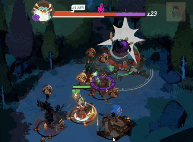 这是蛤蟆的绝技,泡泡攻击会直接击杀最近的敌人。这里我们通过是使用骨王。因为骨王有三条命。其他高阶还可以用凤凰(可复活),蝎子(分身)等方式。短暂蓄力后,向敌方最密集区域发射一枚水弹,对2格范围内的敌人造成220%伤害。