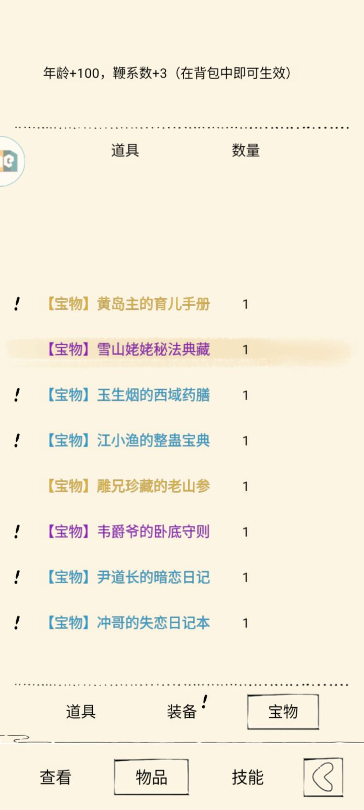 看了一下,我用这个伤害加的还是不够。100岁伤害还是不够,什么时候来个1000岁的宝物。