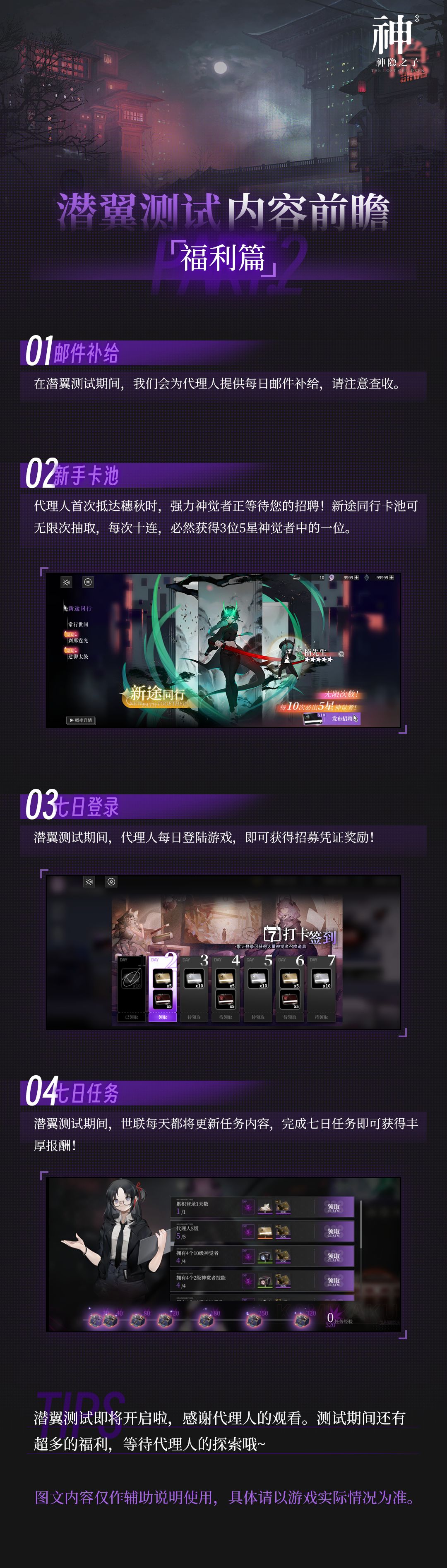 速戳长图,在测试开启前,抢先一步了解本次测试期间开放的活动与福利内容吧~
