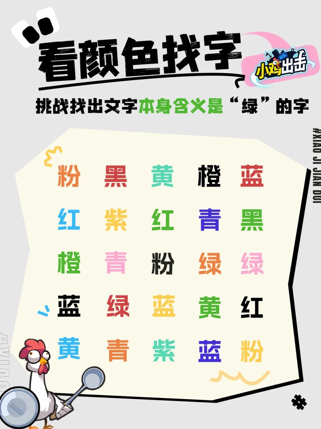 PS:寻找本身含义为绿的字,颜色涂抹为绿色的字并不算噢~