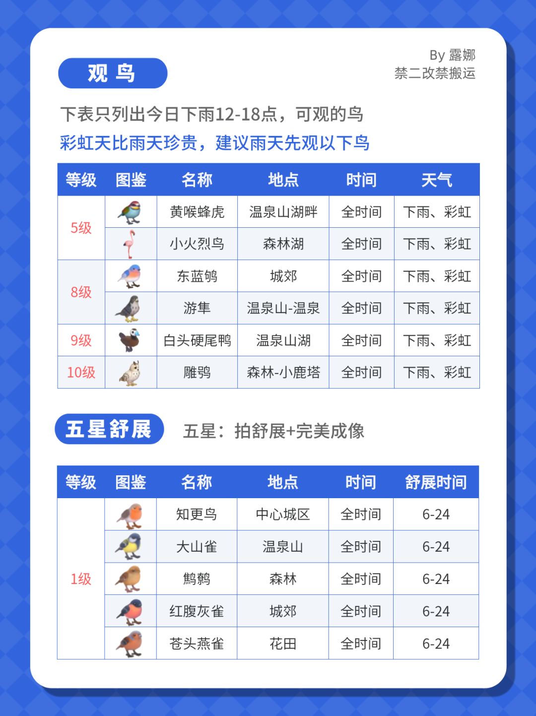 心动小镇 11/12 下雨天必做指南攻略鸟虫鱼