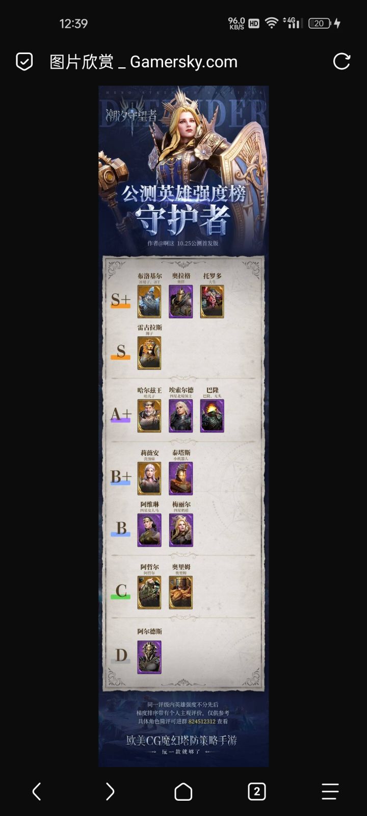 潮汐守望者 开服英雄强度榜