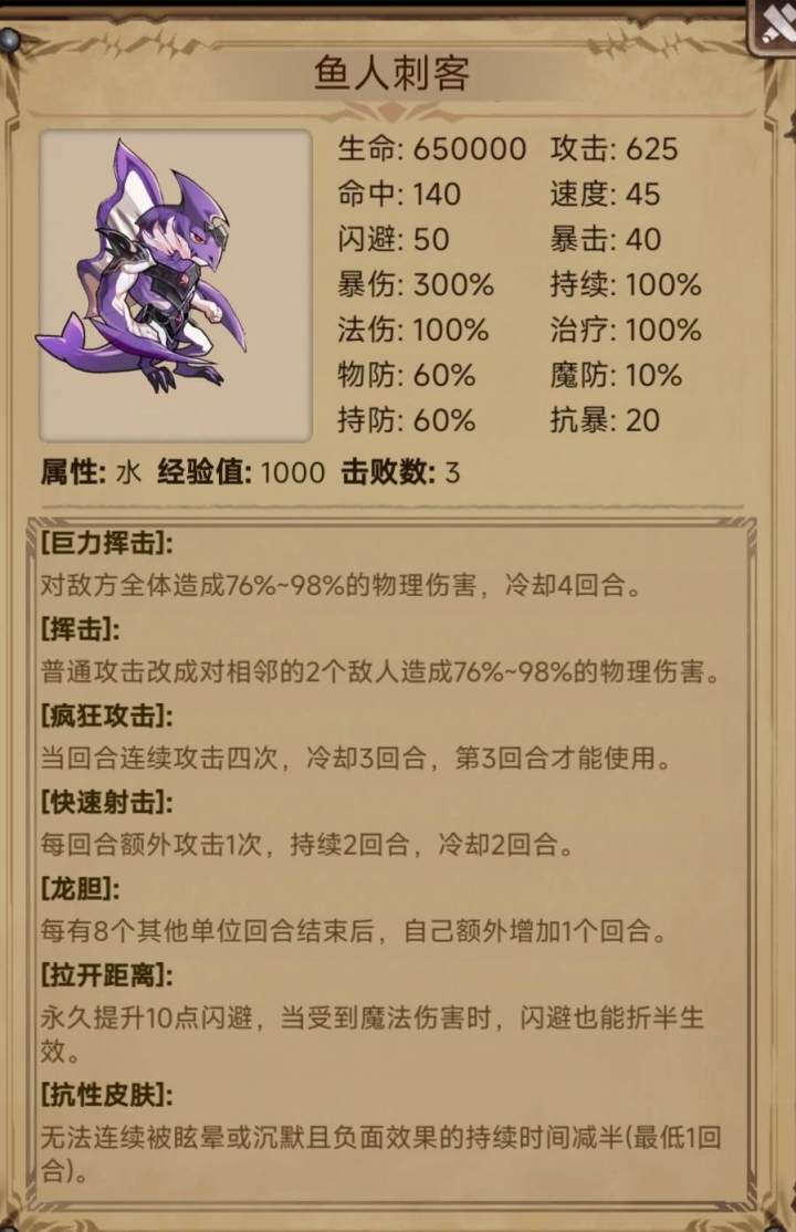 ①大部分技能——总结为一句话☞n刀流/回合,建议高双抗+控制辅助