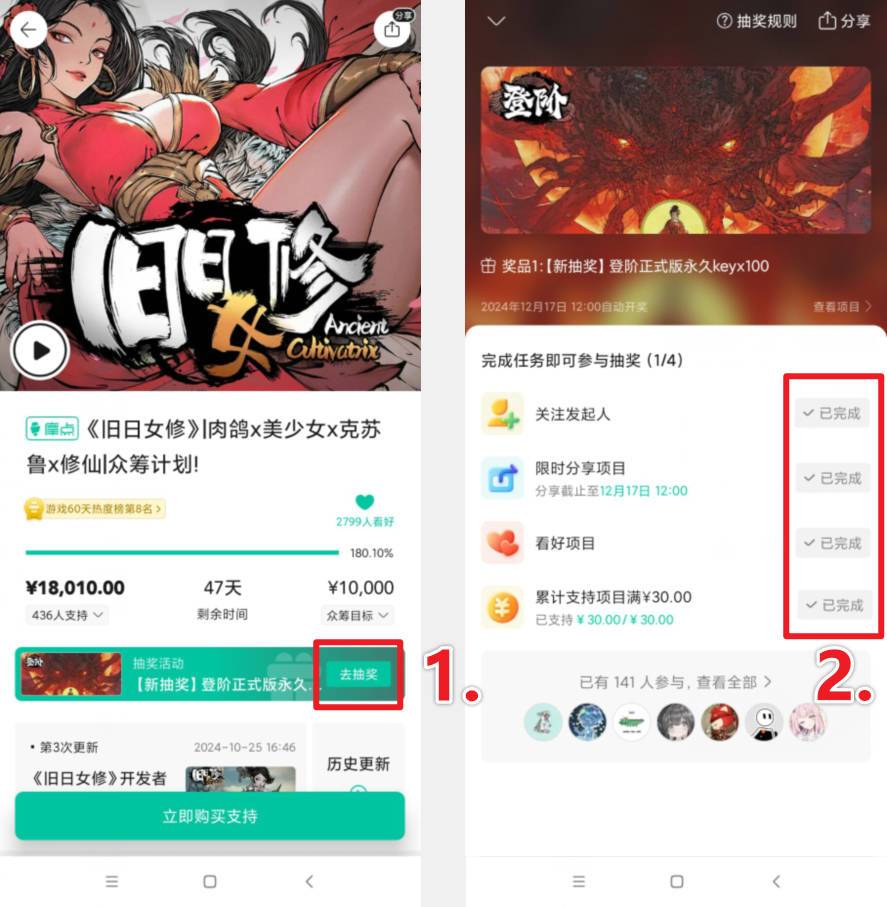 之前在摩点支持过我们的玩家,可以参加活动抽取另一款游戏《登阶》的正式版CDKey啦。