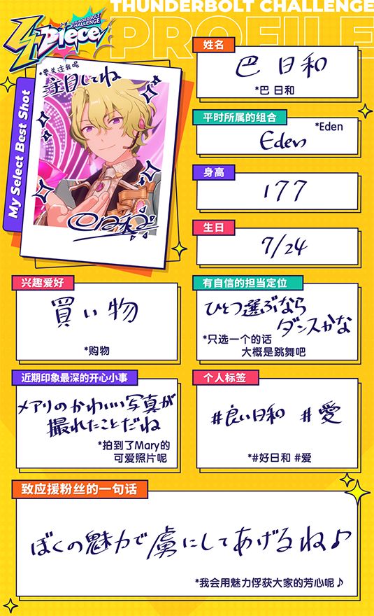 「资格挑战会篇」偶像个人资料手写卡公开♪