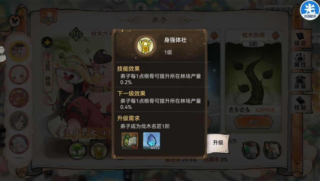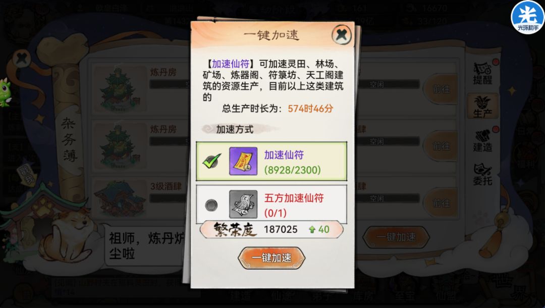 除开加速符以外,弟子的生产效率也是一个不能忽视的问题。
