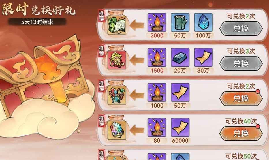 也就是红色招募令和古宝碎片还有经验丹不用换,其余全换完,最后多余的积分换灵石。