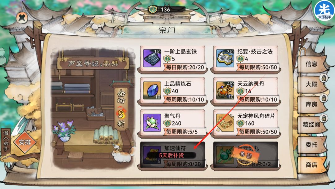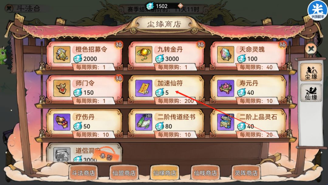 尘缘商店这里加速符和师门令的兑换优先级最高。