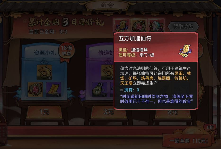 仙书除了加速符还有混沌等其他性价比较高的奖励。