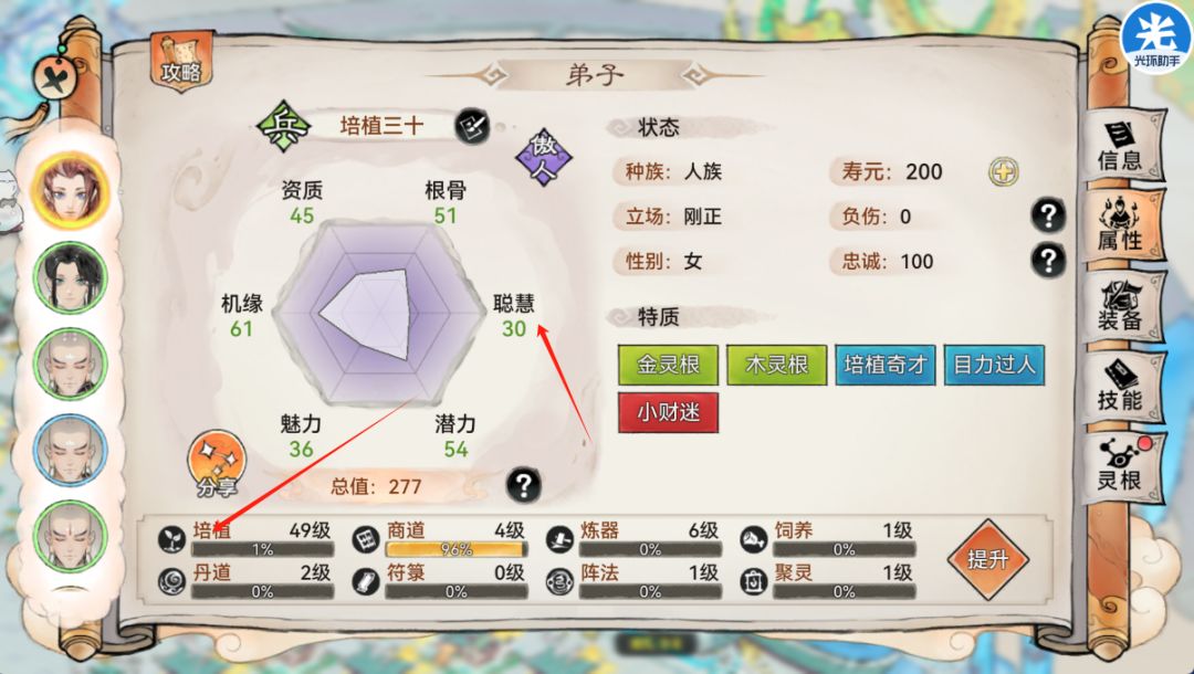 其次不同庶务弟子会根据属性点的不同增加所在产地产物的产量,