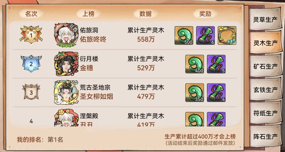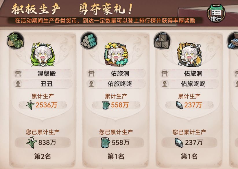 同时活动期间会根据生产的数量进行排名,排名越高奖励越好。