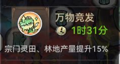 弟子进行灵田、林地、矿场、炼器、制符、阵石的生产活动时。