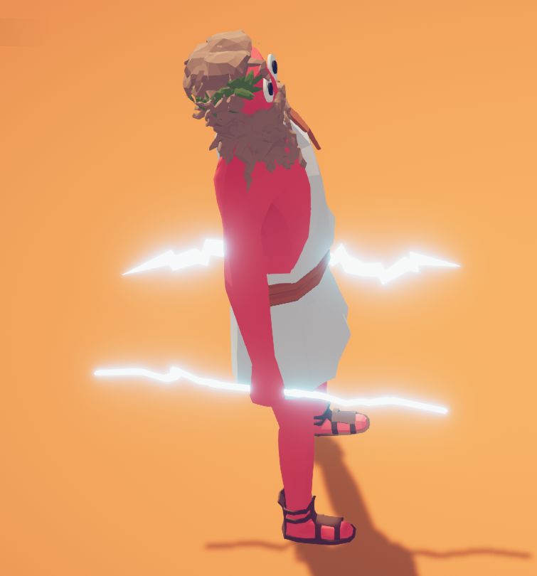 作为TABS的远程角色,宙斯手执雷电行走在战场上,行至一定距离范围内将发动【闪电箭】技能,闪电会在敌人之间弹射,应对批量的杂兵和相对分散的敌阵效果拔群。