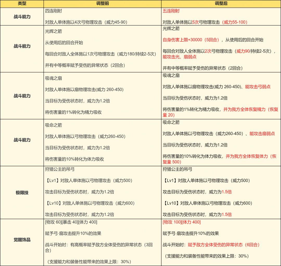对本期被选中的旅人“特蕾莎”进行了性能调整,详情如下: