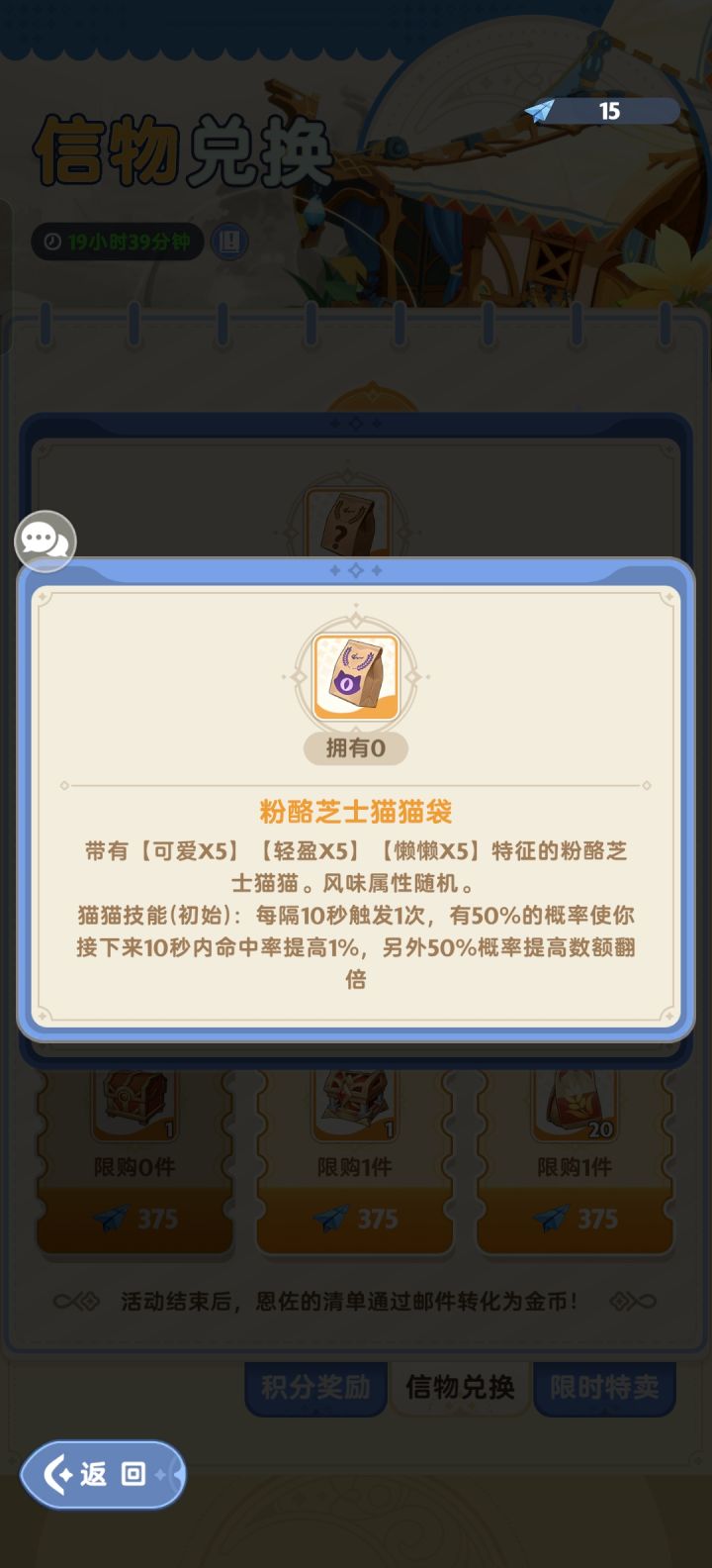 我是每期纸飞机都拿第五层的中氪玩家,因为一只硬币猫都没有,选了自选猫猫包,换了硬币猫,换完了,发现是SSR不是UR。