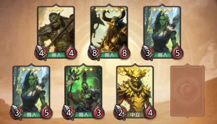 到了中期的兽人战力依旧感人,兽人精锐这版本前期不再强势,主要和节奏有关,前期需要先填满战场以及抓功能性更强的牌,而不是拿打出牌给兽人精锐加属性,兽人骑兵也是同样的道理,前期不会为了魂石专门去拿兽人,毕竟兽人前期真没什么能拿出手的。