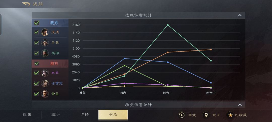 虽然后排的于禁显得低调,不过他同时兼顾了缴械、嘲讽和能力叠加的功能。既强有力的牵制了对手,又进一步提升了队友的战斗力。
