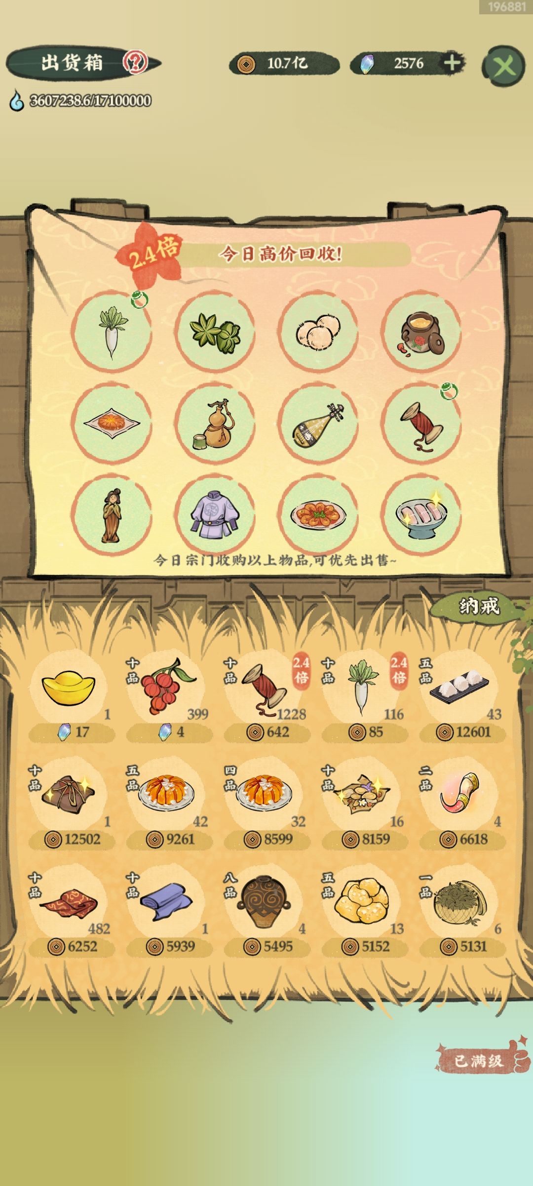 🍎关于出货箱:萌新前期需要升级的优先级最高的建筑,一切玩法和内容都需要等级,而出货箱等级越高,升级越快,但有一点要注意,萌新玩家前期要学会卡箱子等级,举个例子,你目前出货箱刷新倍率为随机1.4-1.8倍,你背包里有一万西瓜,你没有卡出货箱等级,第二天来临,箱子随机刷了个1.4倍,而你等了好久好久的西瓜up出现在了出货箱,你是卖还是不卖?卖了亏40%,相当于什么呢?你的西瓜种子每天凭空丢失300*40%=120个种子,那么如果卡了出货箱等级,在出现西瓜倍率的当天,升级出货箱,可以立刻刷新到最高倍数,岂不美滋滋?