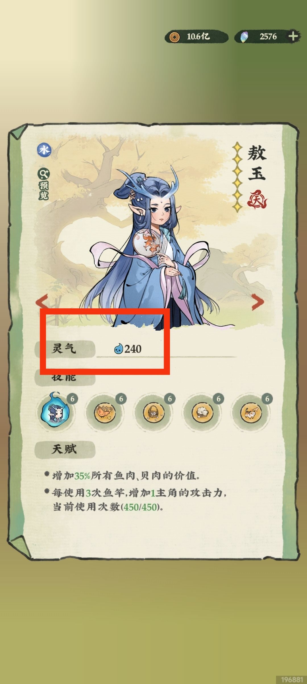 🍎角色星级越高,秘境时间越短,比如木系四阶五阶秘境,每次派遣四个六星天级木系角色,可以缩短时间到4小时,而角色星级太拉胯会造成,你跑一趟的时间,别人已经跑了两趟了,差距会越来越大,注意,派遣的角色需要选取对应五行属性的,比如木秘境需要木系五行角色上场,这样做会有对应灵气值翻倍,什么是灵气值?如图四所示,水系敖玉满星灵气值为240,把他派遣到水系秘境时,灵气值会加成到480,而灵气值越高,秘境派遣时间越短,这就是角色的意义。