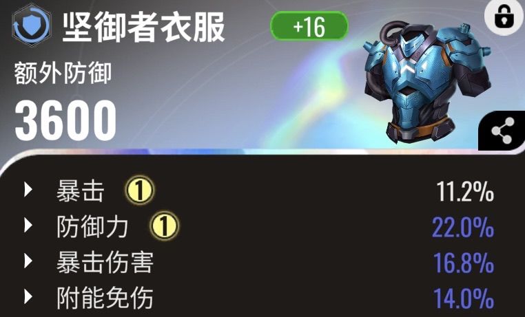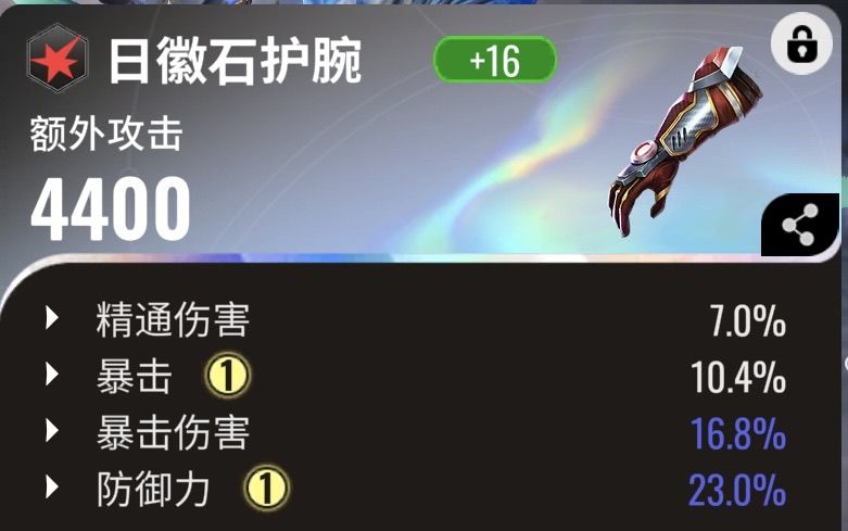 装备可推荐暴伤暴击套装副属性必须要求苛刻,防御力%、暴击%、暴击伤害%这三条必须同时配备,注意这是最低要求。进阶要求是强化升档也在这三个副属性内。完美情况是还能搭配其他有用属性、如生命力、初始能量等。这就随缘了,因为很难达到。