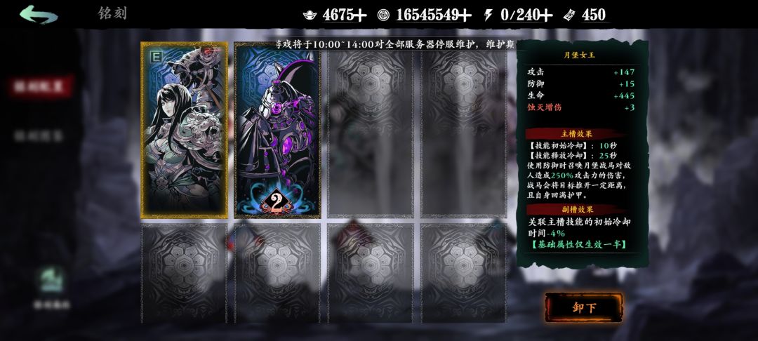 有人说后边进图就死,那可以考虑攒奥义进关卡(无锋最简单,进去奥义就行奥义期间是无敌有),也可以考虑利用铭刻进去,上边图片有萌新前期铭刻选择(通用的),可以白剑进去放沉默往后走等怪踩沉默再上去,或者月堡直接进去撞对面然后上去打,或者鬼手的无敌上去打怪,就是利用技能的铭刻保证自己进去不死,铭刻的使用选择看进图离怪的距离,多打几次就知道技巧了。