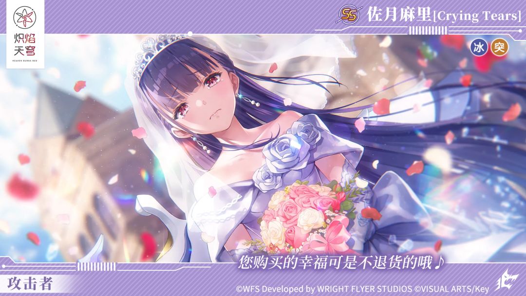 活动期间登录即可获得「感恩回馈必得SS探索券」×1,该道具可以在「必得婚纱新衣装SS!感恩回馈特别纪念扭蛋」中进行一次单抽,必得11/20新登场的两个SS风格——SS佐月麻里[Crying Tears]、SS大岛一千子[Sweet Phantasy] 中的随机一个,还请不要错过!