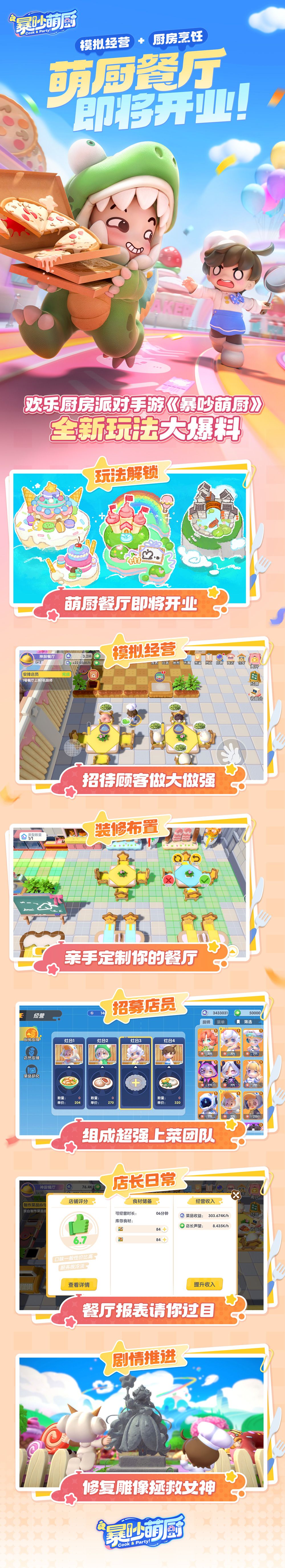欢乐厨房派对手游《暴吵萌厨》模拟经营玩法大爆料!各位老板,请下滑查看本帖,抢先视察属于您的料理产业吧![[表情_酷]](https://img.tapimg.com/market/images/edd50e702f508971043f5619f686740e.png)