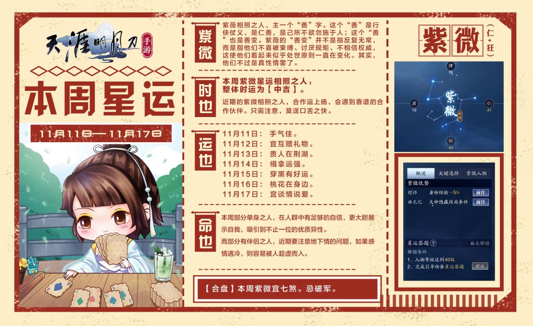 刀妹携带【客栈小星】来给少侠们送好运啦~无论本周星运如何,大家都要相信自己的未来灿若繁星!
