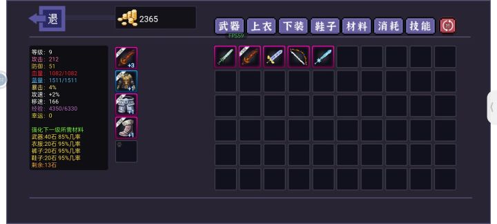 玩法就是不停刷右边史莱姆,合成高级钥匙,然后进高级本,打武器装备,火武带鸡腿和碰撞伤,冰武带冰冻,苍龙增加自身防御和护盾。刷刷刷游戏,还是挺不错的,希望作者有时间继续制作。加油!!!