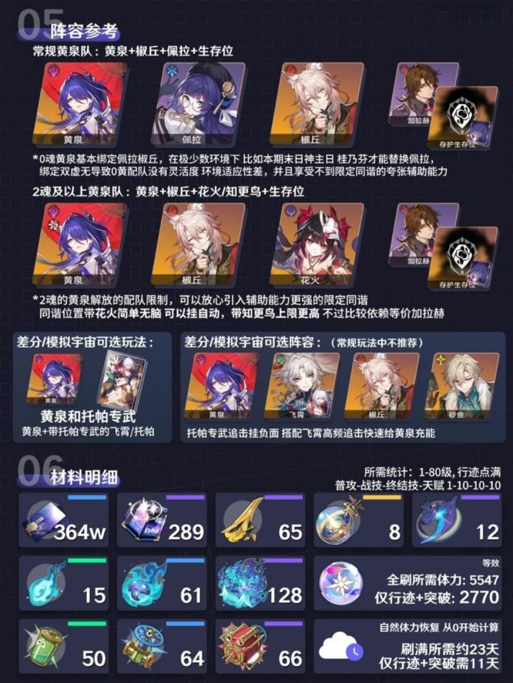 本篇是黄泉的复刻培养攻略