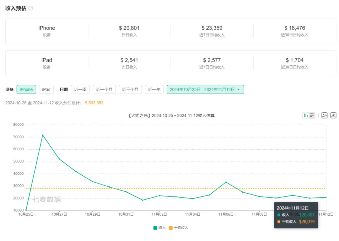 游戏商店各大排名、在线人数均大幅领先于上个赛季,开服19天,巅峰在线人数对比开服最多的时候留存率高达71%,无比亮眼。在收益方面只在开服第一天超大幅度落后于上赛季 1万对比5万,而后面除了前几天均全面领先于上赛季,随着时间的推移,本赛季心动收益的优势会越来越大。