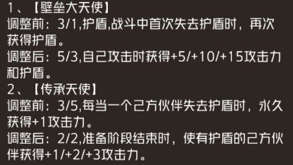 天使两个棋子的重做有点让人摸不到头脑,更何况天使种族在本赛季并没有上赛季的表现亮眼,作为一个缺点明显的种族,在本次更新中全是削弱,让人有点看不懂。