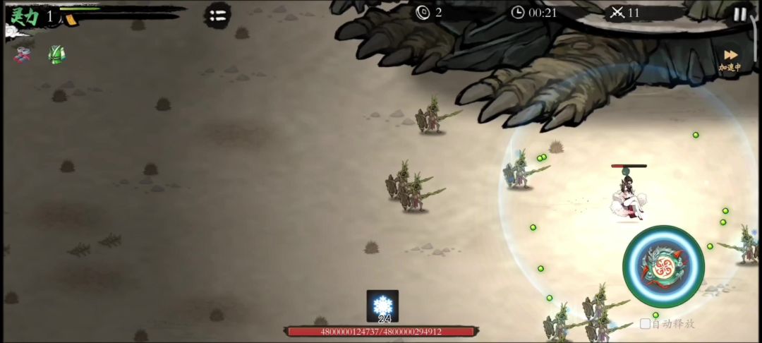 开始没必要花钱解锁左下角的法宝,就用给的初始连珠剑。不管前期后期都很猛,另外可以考虑携带涌炎术,群体攻击更好活下来。