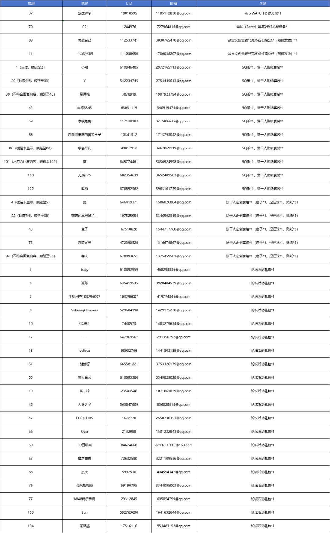 8.活动结束后15个工作日内将会公布获奖名单,请到本帖查看开奖公告。获奖名单公示后,请获奖玩家于公示期提供相关获奖信息,逾期视为放弃奖励!
