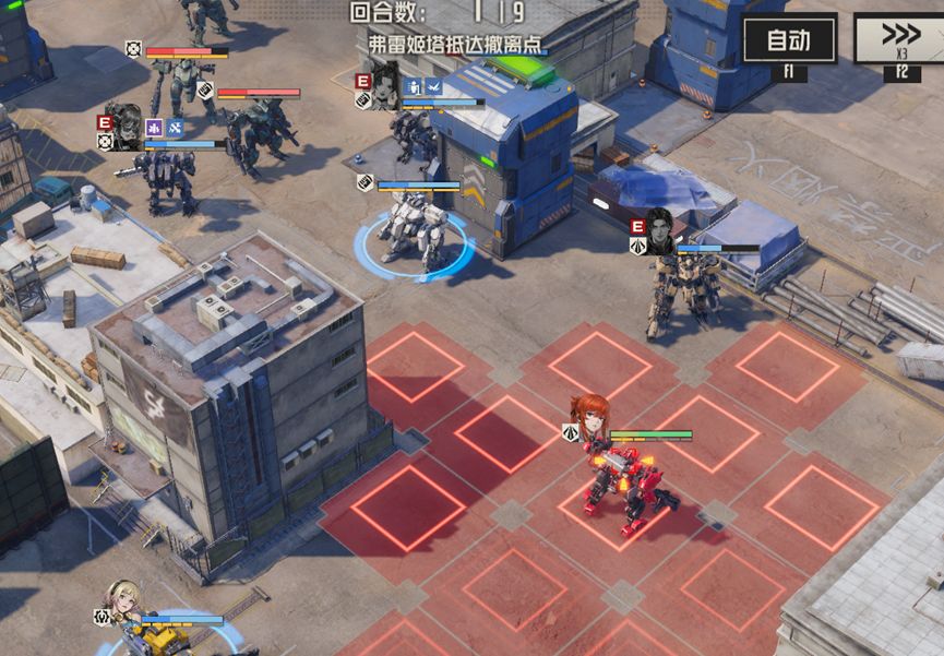 本关我们任务是护送弗雷姬塔撤离,而弗雷姬塔非我方可控,所以我们要做的就是清理路上的敌人,为弗雷姬塔开路。此外,我们需要尽快拿下场上的机兵复制器控制权,召唤机兵协助我们战斗。最后,珂赛特是能够多次复活的,第一次我们可以将她消灭,后面再次出现,我们将其拦住即可