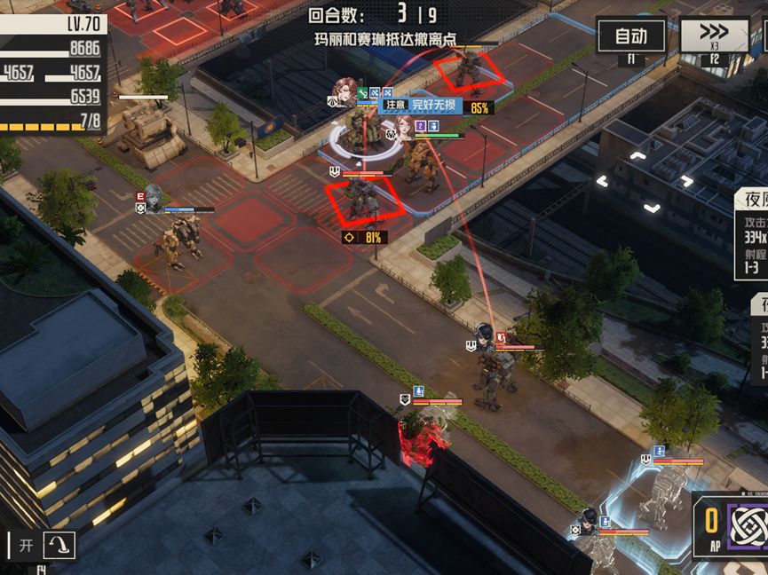 赛琳这边,西尔维亚消灭残血战术精英,利用再动来到玛丽这边收掉左边的残血敌人