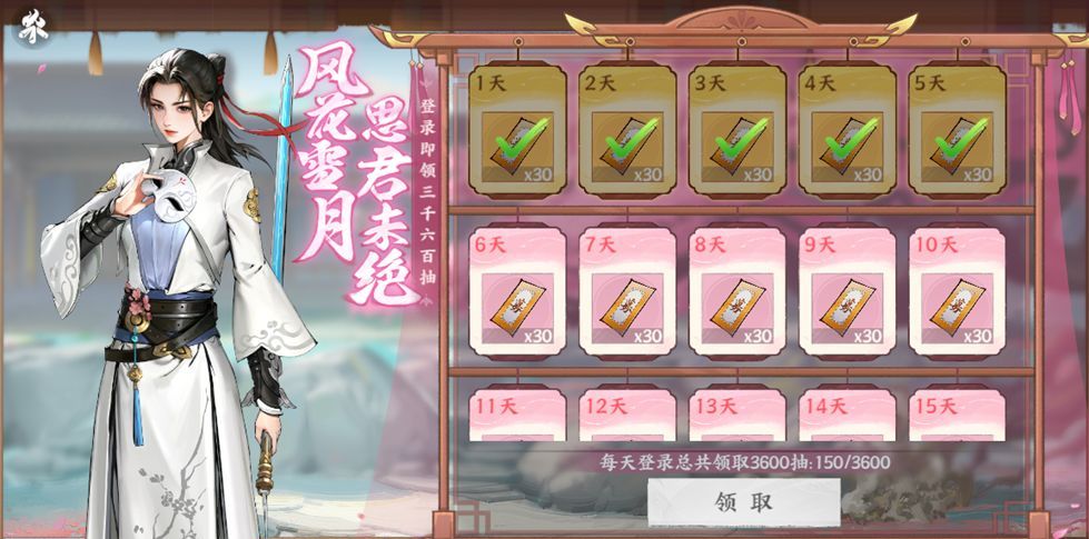 每日登录即可免费领取30抽,总共可领取3600抽!还有更多在线、签到福利活动,等你来!