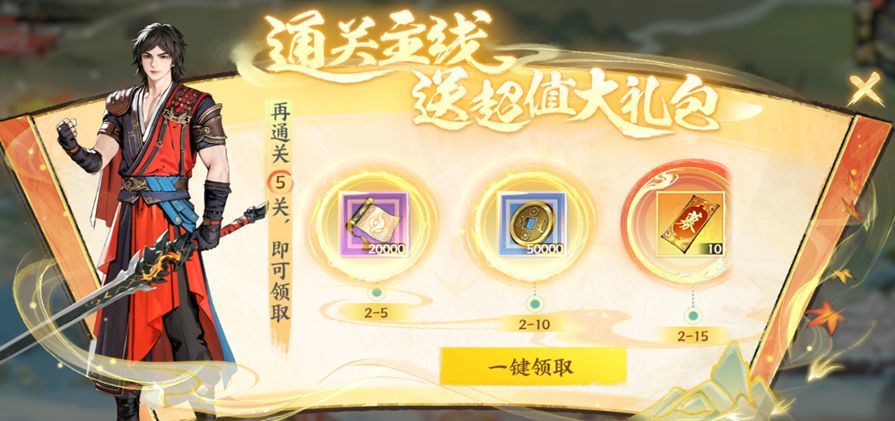 【通关大礼包】通关主线 送超值大礼包!主线每推进一定关卡,即可获得一份超值大礼!