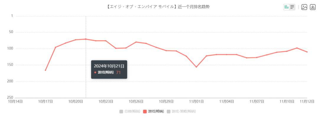 10月国庆节以后,大量国产游戏在日本市场开启了大混战,而当地也在按部就班每周上线一两款新品,刚好又碰上个别新品大爆发,一时间10月后半的日本市场,形成了群魔乱舞的局面。
