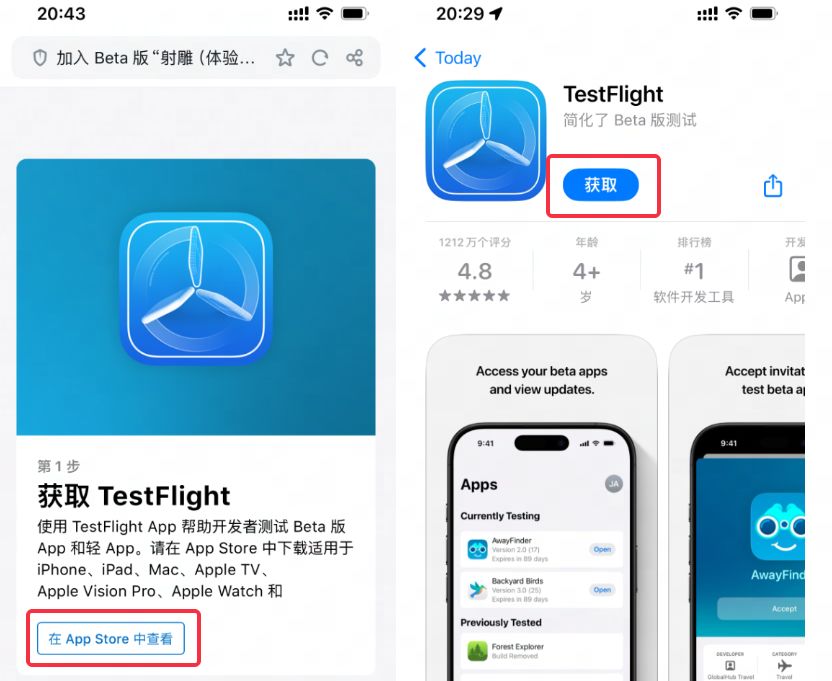 2、如果您的移动设备尚未安装 TestFlight,则可通过以下指引进行安装。