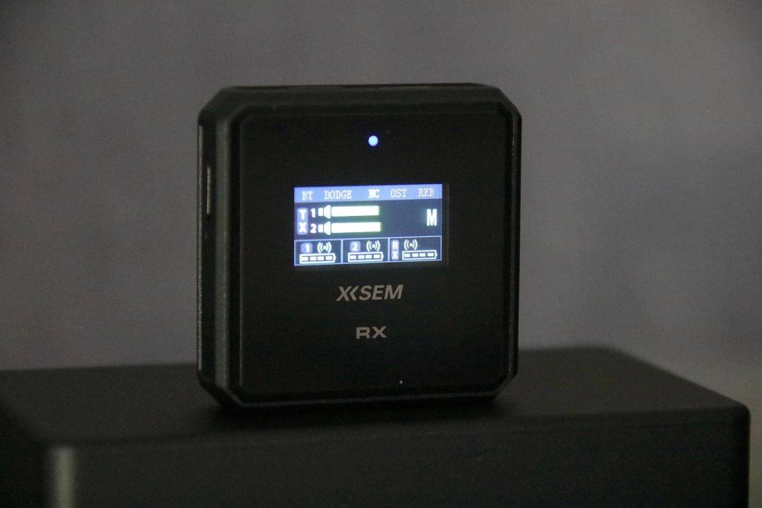 值得一提的是,西圣Mike Pro的麦克风和接收器均配备了TFT显示屏,它上面显示的内容还挺多的,我们可以通过这个屏幕查看它们的各种功能状态,比如电量、音量、模式等等,针对户外时使用,它这种屏幕的特点就是即使阳光强烈也能清晰可见。