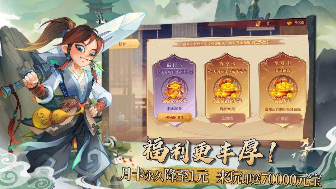 月卡永久降至1元,更有终身卡每日元宝拉满!开服即送3500元宝,参与活动更可累积获得高达70000元宝,给您最丰厚的修行资源!