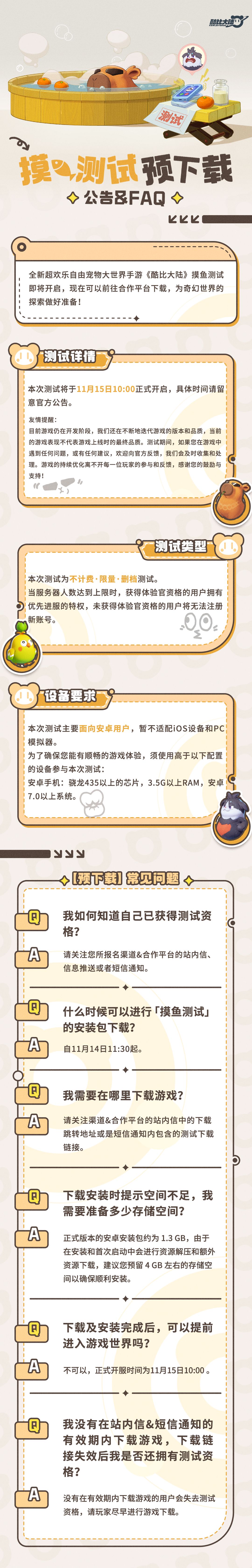 !今天为大家带来摸鱼测试预下载公告&FAQ~