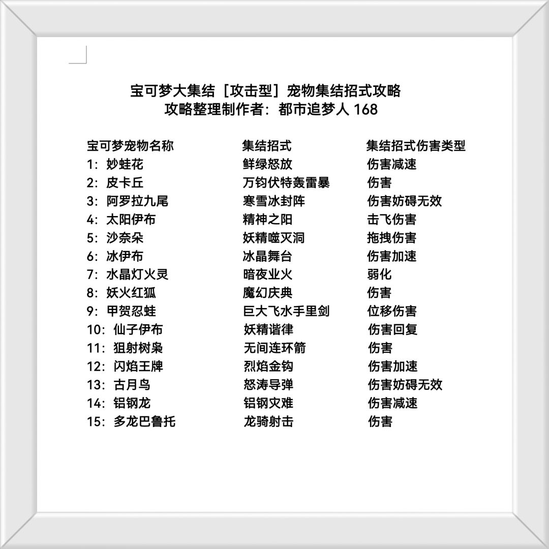 宝可梦宠物名称 集结招式 集结招式伤害类型