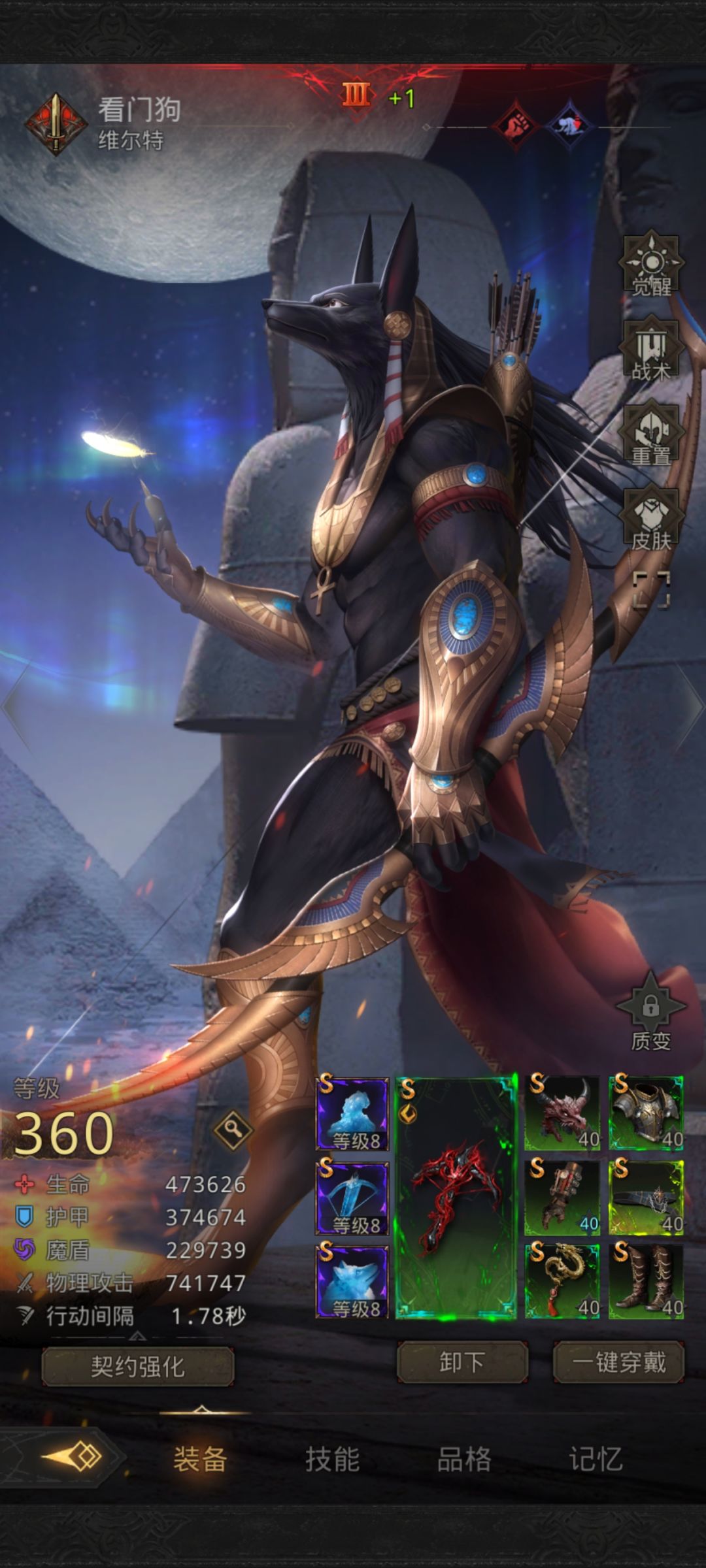沙蛇(减抗增伤工具人)武器:淬影缠锋豆枪、符文刃甲,防具:龙角盔、赦罪衣、幽林手、科技鞋,豆铠,幽暗腰带。饰品:豆坠。