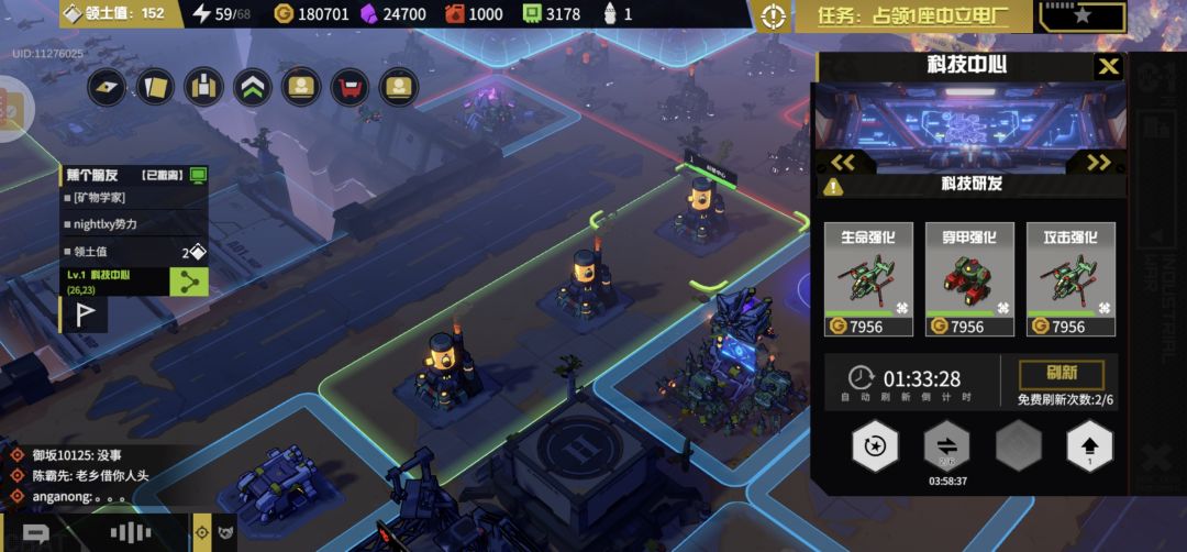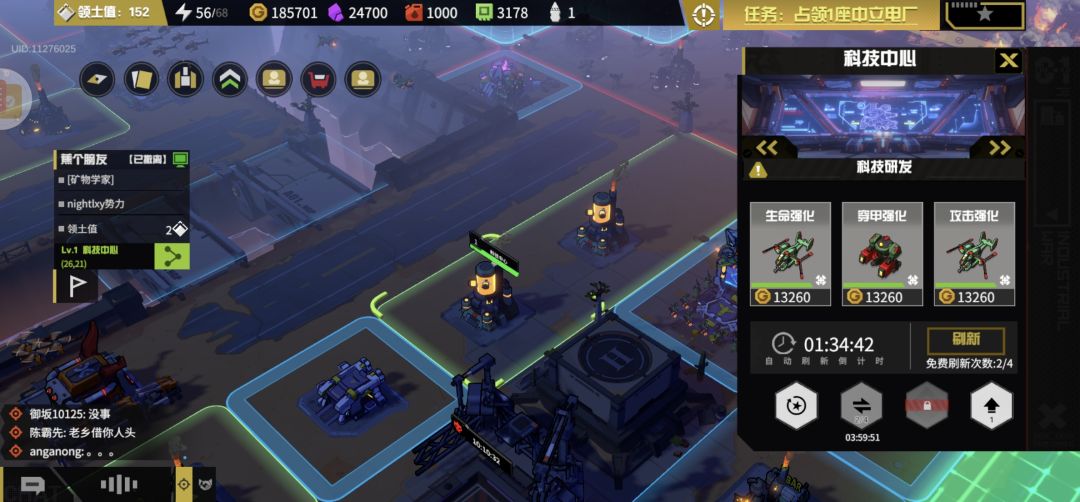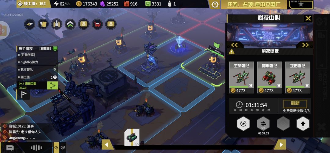 玩家1有时空理论冥思,-30%游丝,麻团二技能,并且建造了四个科技中心,玩的是女武神,现在有16个紫色科技,4个紫色天赋,请问他下一个刷新出来的陆战队蓝色科技是多少钱,算出答案的请把答案留在评论区。大家也可以去战局里自己验算一下。如果有什么差错欢迎指正。