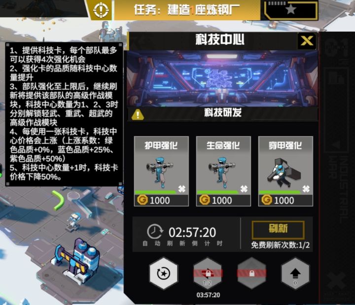 (向下取整,y小于0取1,k为科技中心数量,a为蓝科及天赋数量,b为紫科及天赋数量,c为减费合计,d为部队类型系数,e为品质系数)