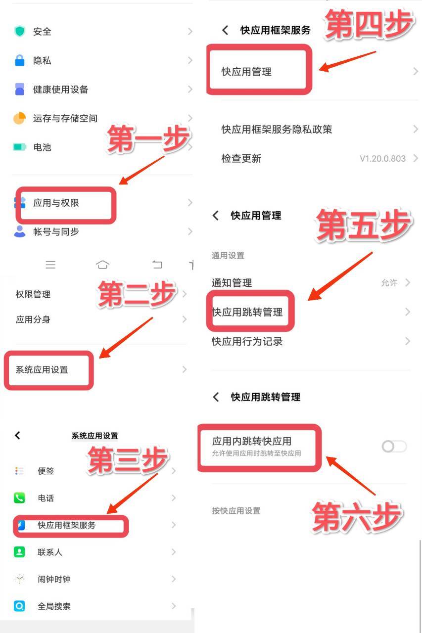 点击手机设置-应用权限-系统应用设置-快应用框架服务-快应用管理-快应用跳转管理-应用内跳转快应用关闭